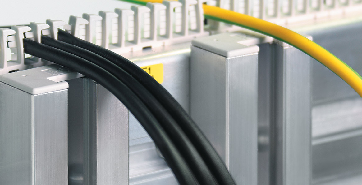 Lors du câblage des armoires de commande, des composants lourds comme des alimentations par exemple sont généralement vissées sur des rails. Pour cela, LÜTZE propose le rail RG 035 pour les systèmes de câblage AirSTREAM et AirSTREAM Compact. Les composants lourds sont vissés à la verticale sur le rail.